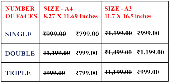 The above rate chart is for artworks without frames. If you would like to include a frame, please mention it in the chat while placing your order.